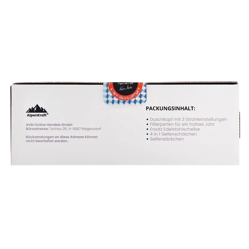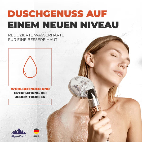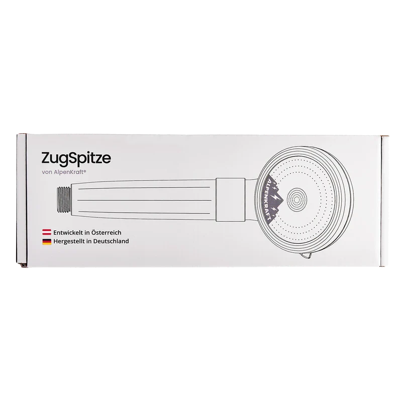 Mit dem AlpenKraft® "ZugSpitze" Duschkopf erleben Sie ein intensives, aber dennoch sanftes Duscherlebnis, das Ihre Haut reinigt und verwöhnt. Unser Duschkopf ist umweltfreundlich, made in Germany und erfüllt alle strengen Richtlinien. Außerdem haben Sie fünf Jahre Garantie!