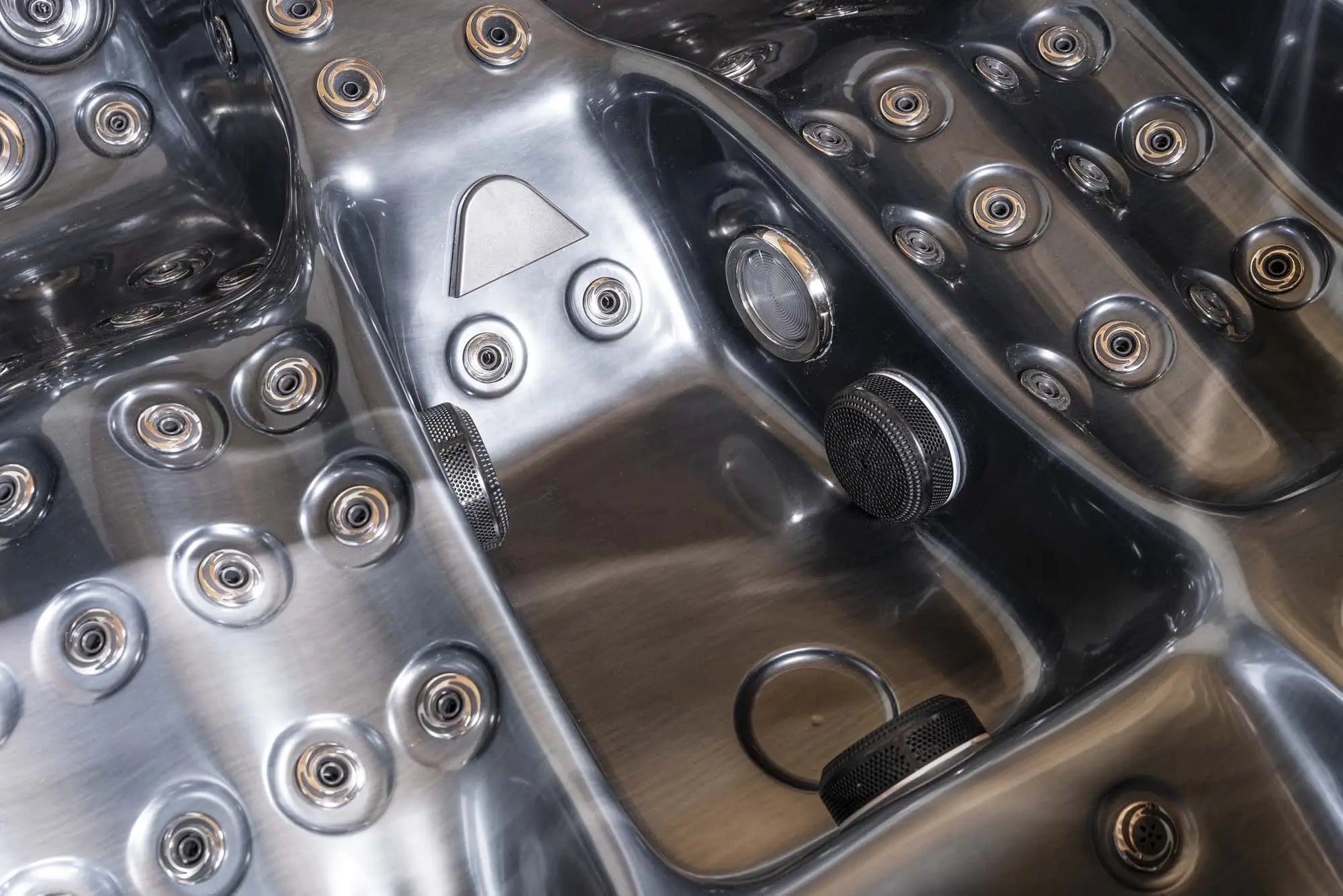 Unsere American Whirlpools von Bellagio werden aus hochwertigem und mit Glasfaser verstärktem Sanitäracryl (3,5 mm) gebaut. Unter Umständen haben Sie bei anderen Anbietern schon ähnliche Pools aus billigem ABS gesehen – wir wollen jedoch keinerlei Abstriche bei der Qualität unserer Produkte machen und verwenden jedoch ausschließlich dieses hochwertige Acryl.