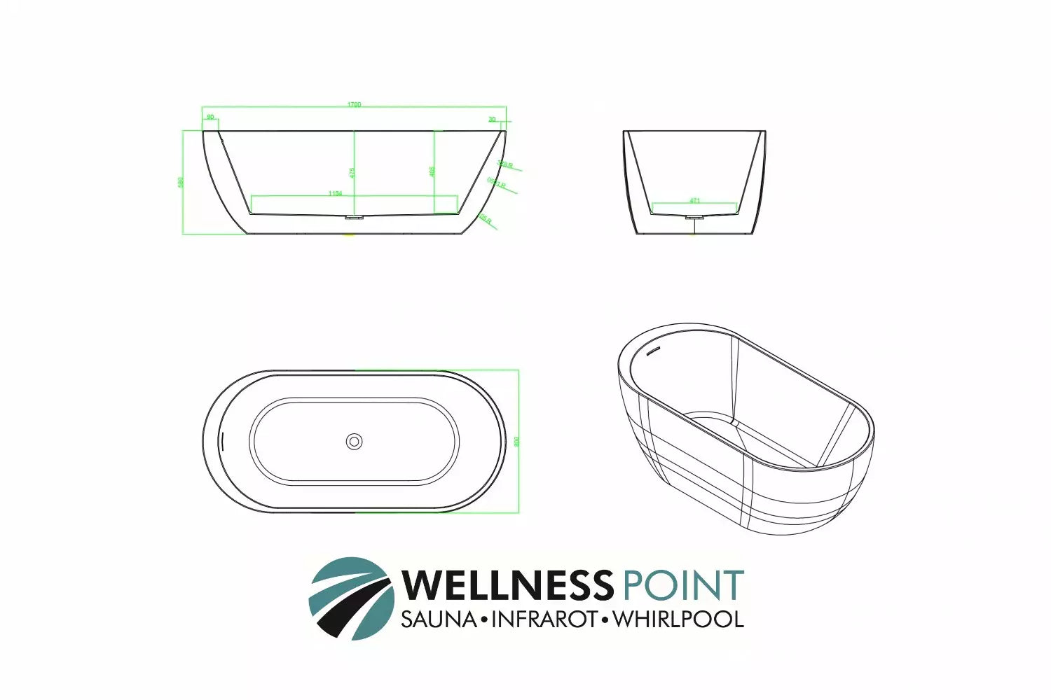 BADEWANNE RENO 170 x 80 cm AUS HOCHWERTIGEM MATERIAL