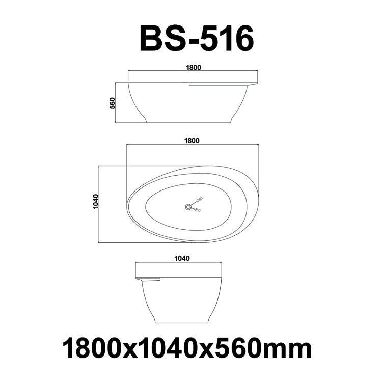 StoneArt BadewanneBS-516 weiß 180x104 cm glänzend